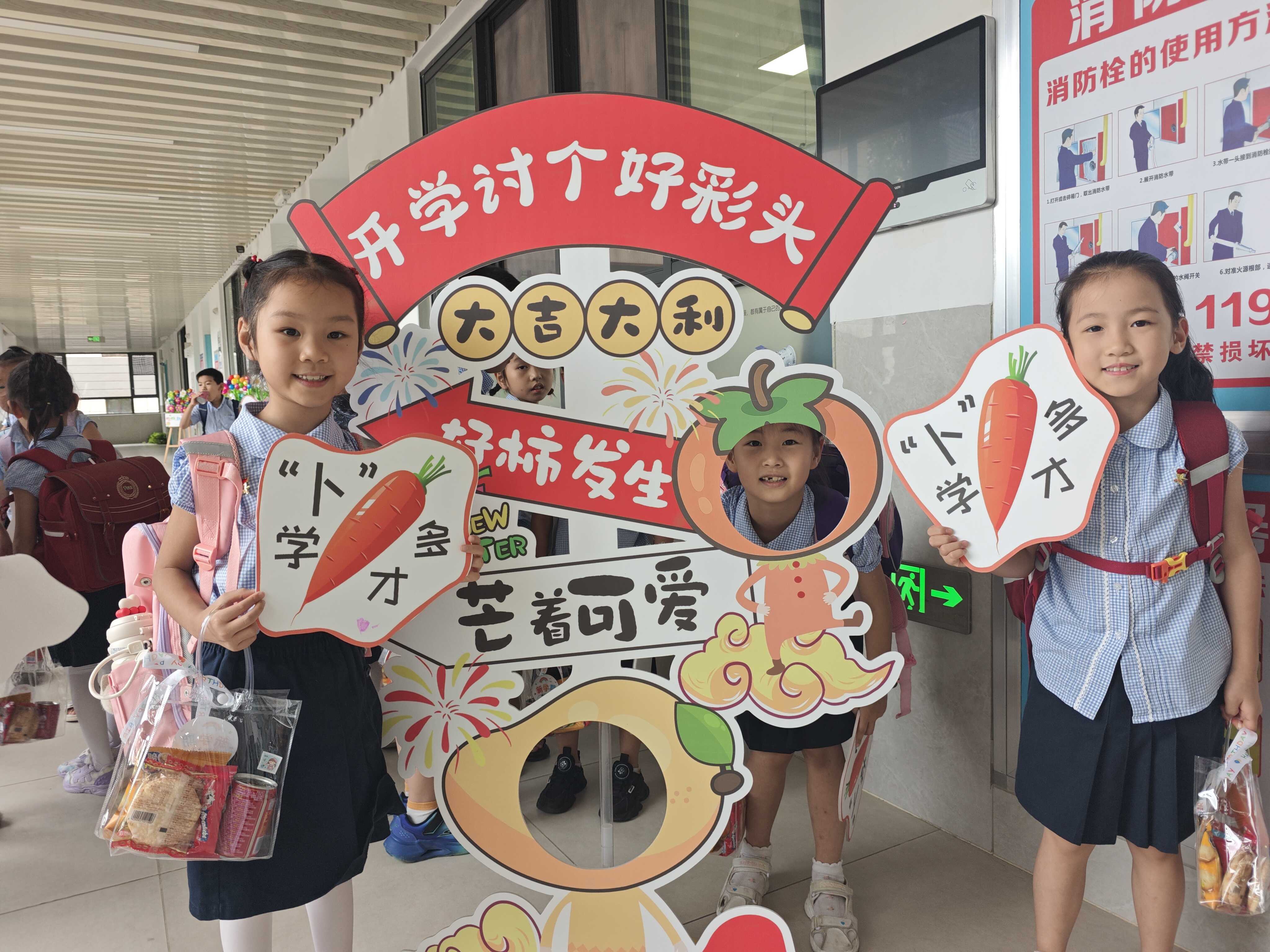 清晨,校门口已然成为一片欢乐的海洋。“欢迎新同学!”——气球拱门灿烂夺目,“我们上学啦!”校园拍照打卡点留下了孩子们入校第一天的珍贵影像,每一张小脸上都写满了对未知世界的好奇与“新”喜。老师们亲手为孩子们送上精心准备的“入学礼包”。满满的仪式感,瞬间化解了孩子们的紧张与不安,取而代之的是融入新家庭的快乐与温暖。他们牵着爸爸妈妈的手,勇敢地独自背上小书包,眼神里闪烁着对知识海洋的向往,迈出了求学之路的第一步。