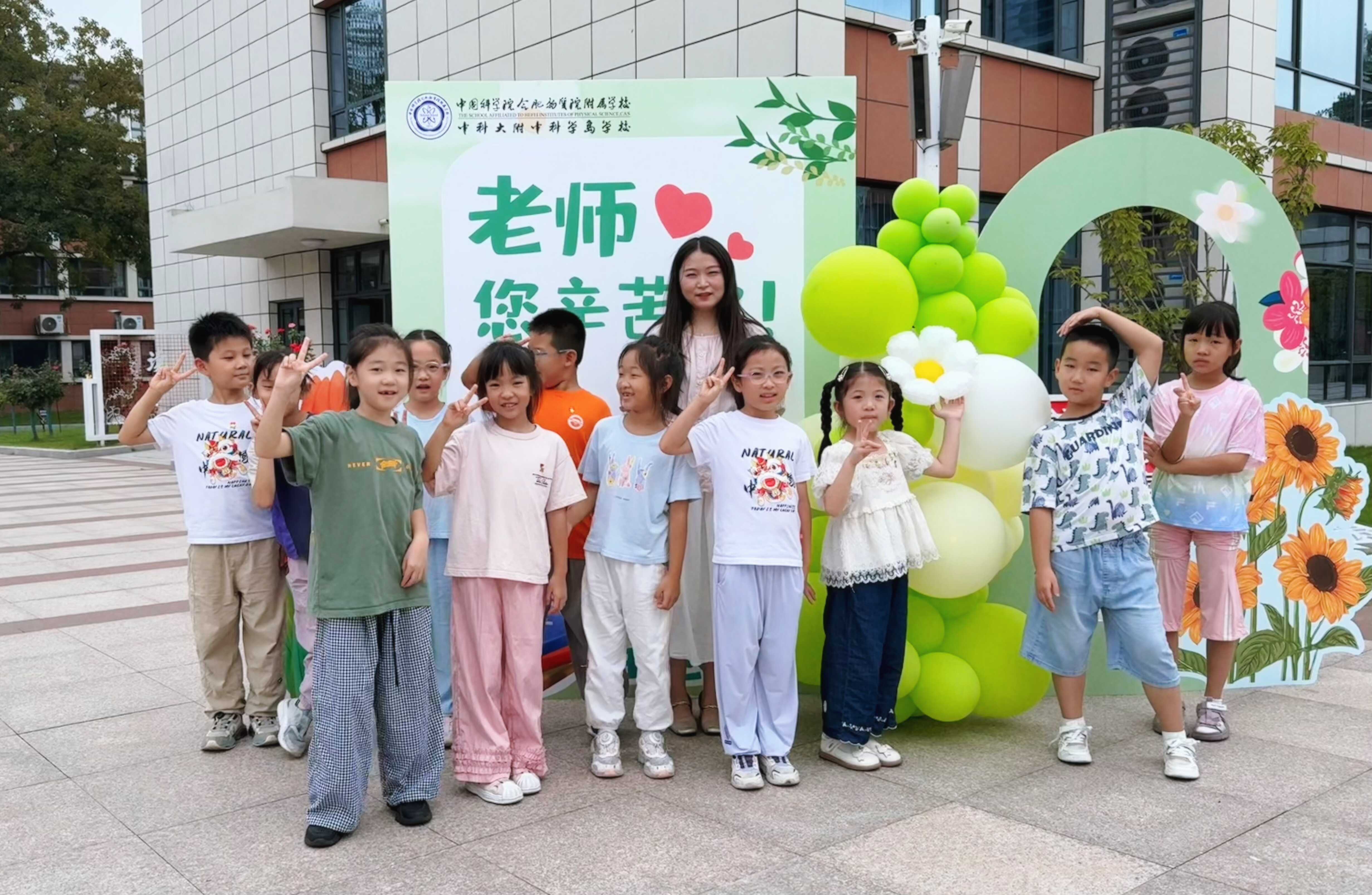 晨光中,一二年级教室铺满斑斓画纸,孩子用温暖笔触撒下满枝繁花,桃李争芳谢师恩,是孩子用色彩涂满“喜欢”;校园里,孩子们与老师的合影互动亲密有爱,一举一动定格下难忘的温馨时刻。