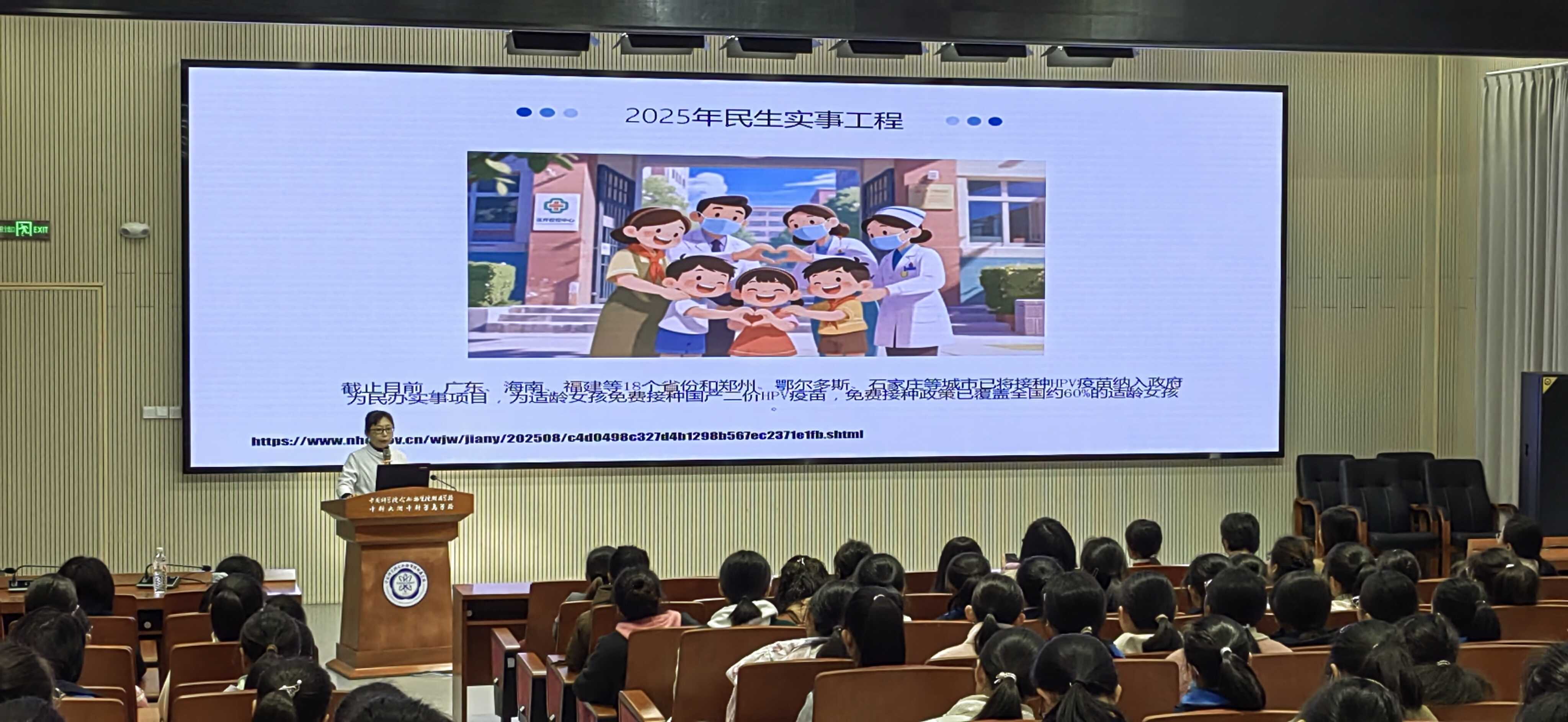 讲座中,杨医生以权威政策为引领、专业医学知识为支撑,系统讲解宫颈癌危害与HPV疫苗的防护作用。她指出,我国《加速消除宫颈癌行动计划(2023年—2030年)》与世界卫生组织“90-70-90”目标(90%女孩15岁前完成HPV疫苗接种、70%女性35岁和45岁各接受一次规范筛查、90%确诊患者得到治疗),为全球宫颈癌防治提供了清晰方向;2025年,安徽等地已将国产二价HPV疫苗免费接种纳入民生实事,仅合肥一地便预计为6.46万名适龄女生提供接种服务。 最后,杨医生逐一解答师生及家长关心和感兴趣的问题。