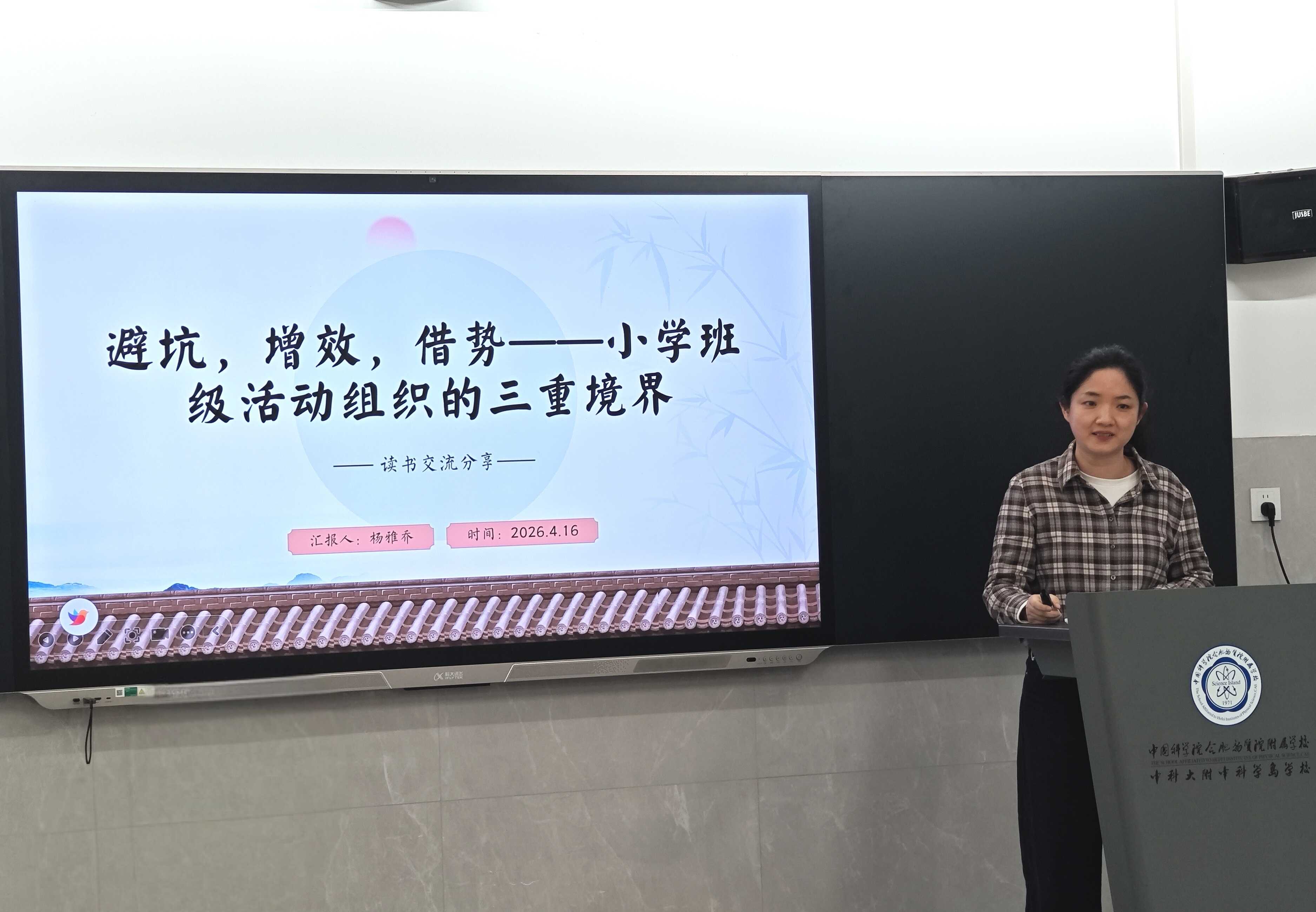 “组织班级活动,最怕什么?”小学部杨雅乔老师以问题开启,分享了她从《好玩又好用的创意班会》等书中汲取的智慧,以及她自己摸索出的“三重境界”。一重“避坑”,准备在前。通过流程预演、在队伍中设置“小哨兵”互相提醒,并调整心态,接纳活动中可能发生的“小意外”。二重“增效”,让“玩”促“长”。注重活动的长程设计,使目标随学生成长而升级。同时关照每个孩子,为其安排适切角色,确保全员参与,让所有人在集体中被看见、被温暖。三重“借势”,延续余温。她认为“活动结束,教育才开始”,善于引导学生回顾活动中的闪光点,将那些团结、勇敢的瞬间转化为墙面故事、班会话题,让活动的能量持续滋养班级生命。