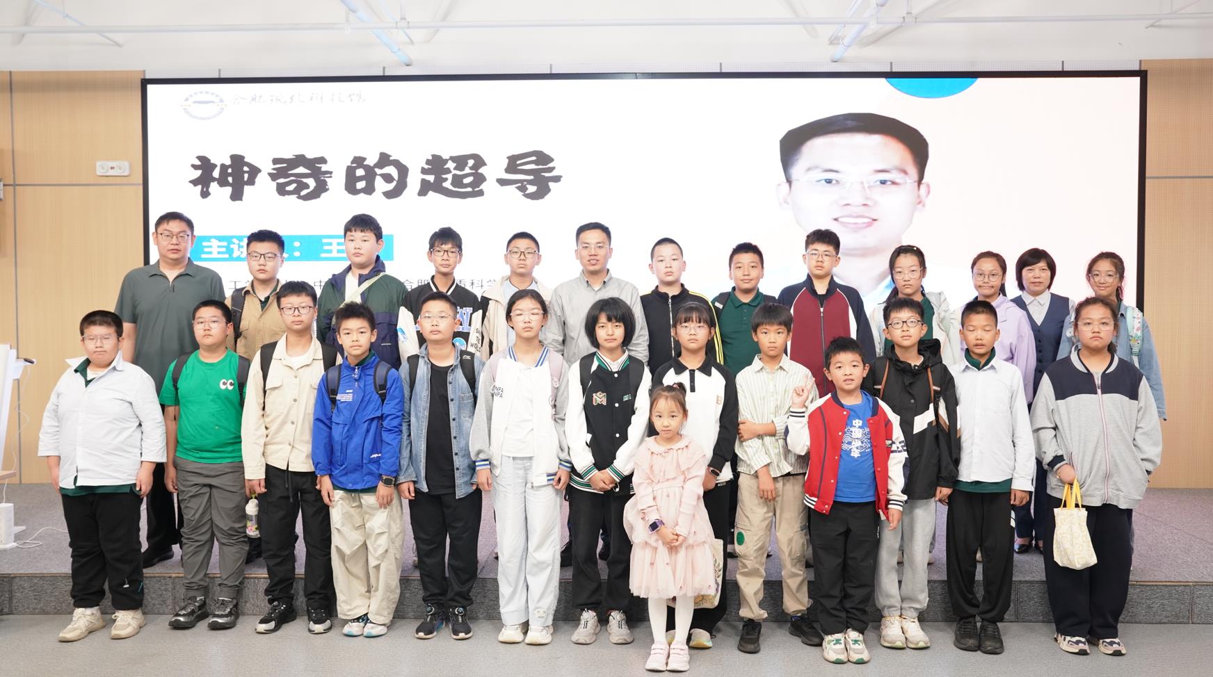 10月12日上午,我校七年级部分同学受邀来到合肥现代科技馆,参加由中国科学院合肥物质科学研究院副研究员王腾博士带来的公开课《神奇的超导》。