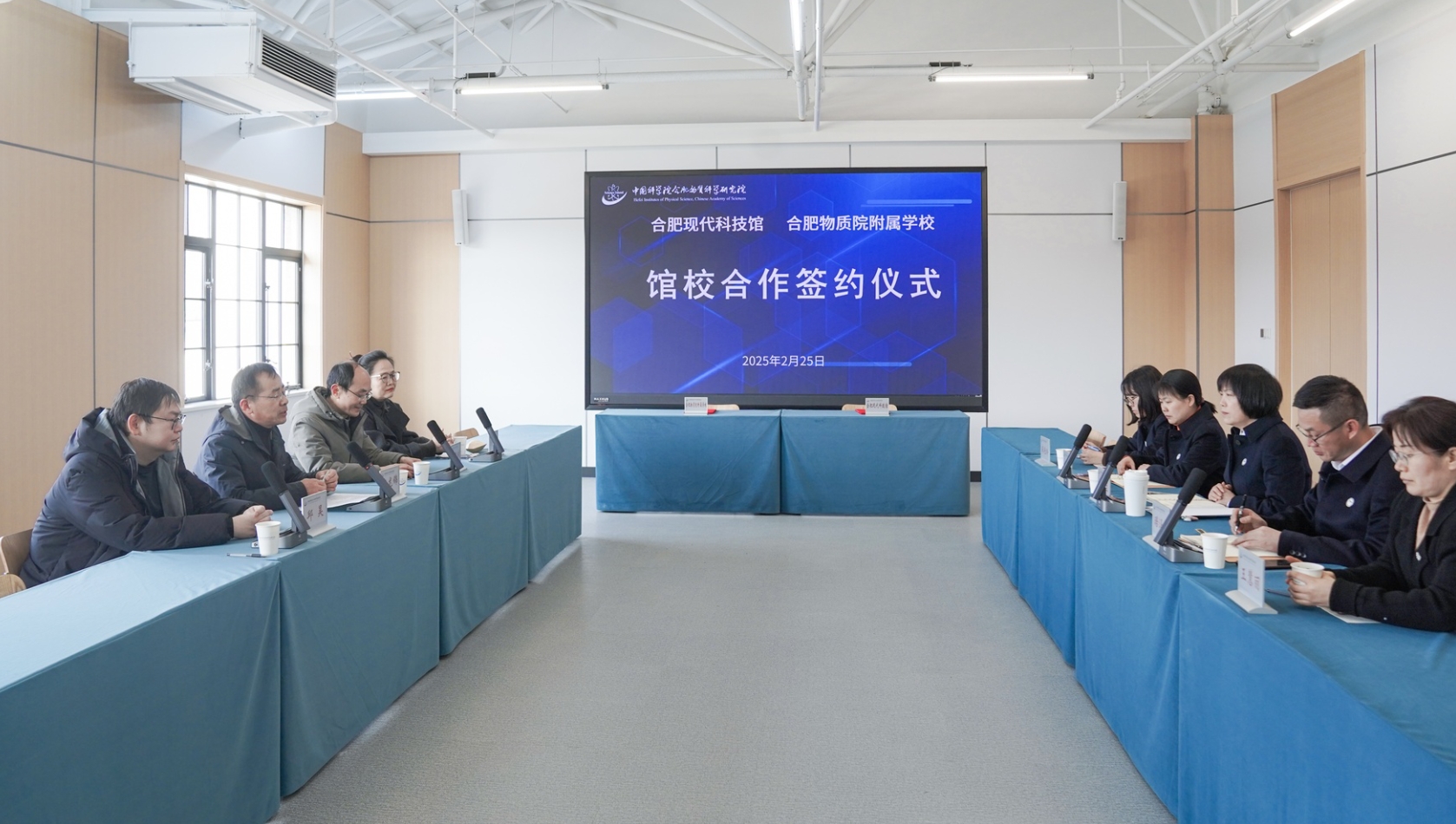 会上,双方就合作的具体事宜进行了商讨。党支部书记孙智斌介绍了此次馆校合作的前期准备工作,表达了此次合作的深切意义。合肥现代科技馆馆长孙裴兰表示,此次合作是科学教育模式创新的重要尝试,通过馆校协同,将场馆资源转化为教育资源,助力学生“在实践中学习,在学习中创新”。常务副校长高龙锦对合作表示了期待,强调学校将推动资源整合、推进校内外科学教育资源有效衔接,为学生提供多元学习实践平台,擦亮科创品牌,打造特色教育。