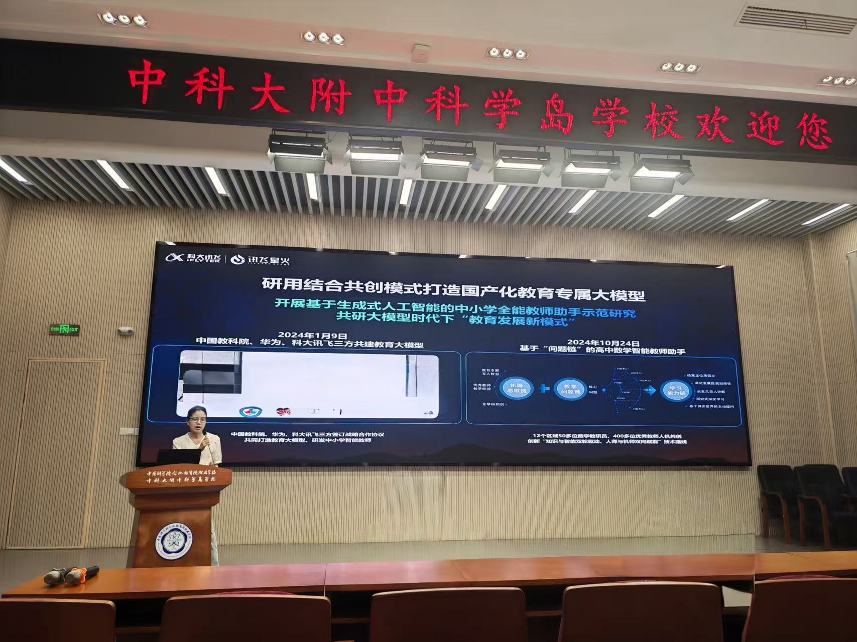 下午,科大讯飞的两位培训老师分别作了题为《中小学人工智能教育实践与思考》《智慧课堂深度应用提升培训》的报告,系统介绍人工智能教育的发展背景、课程设计及教学实践路径。并通过介绍讯飞星火大模型,深入浅出地阐述了人工智能教育的实践应用以及未来发展趋势。