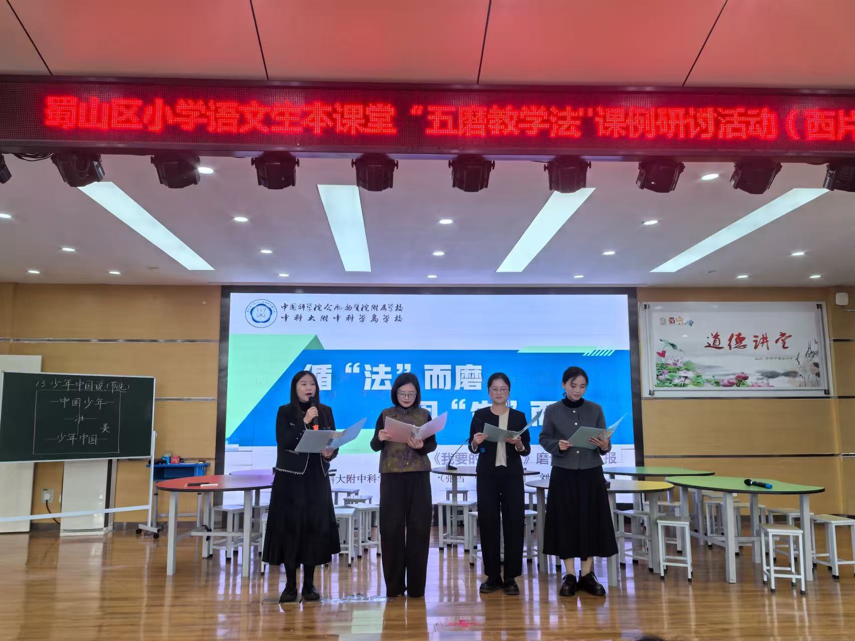 2025年10月31日上午,蜀山区小学语文教研组生本课堂“五磨教学法”课例研讨活动在蜀山小学顺利举行。我校二年级语文备课组成员全程参与,谈珂老师进行了《我要的是葫芦》的课堂教学展示,活动中,二年级语文备课组成员做了“五磨教学法”汇报,展现我校小学语文教研组的积极探索与实践成果。