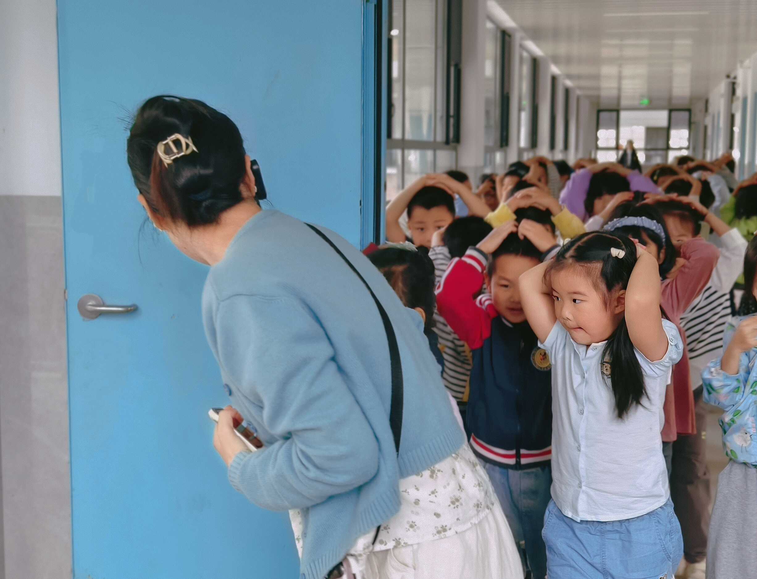 随着防空警报信号响起,演练正式启动。在班主任及安全员的引导下,学生沿着指定路线弯腰低姿、双手抱头快速疏散,全程做到快、整、齐。短短几分钟内,全体师生便安全抵达操场指定集合区域,演练圆满完成。