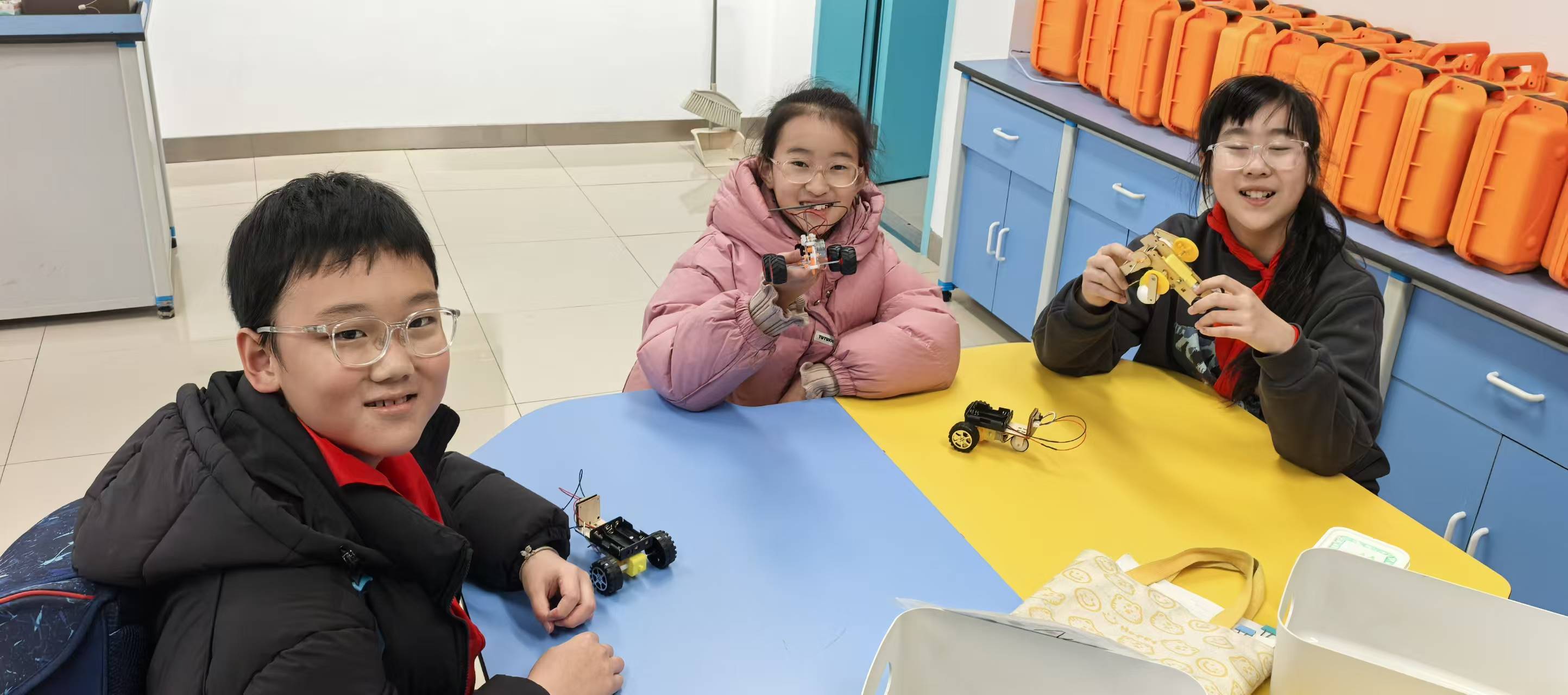 创客社团课程中智能传感器小车的制作则更贴近辅助驾驶的“感知”核心。老师带领学生认识超声波传感器、光线传感器等核心部件,讲解传感器如何像辅助驾驶系统的“眼睛”一样收集环境信息。学生们利用木板、直流电机、传感器和太阳能板等材料搭建车身,学习电路组装与连接电路的技巧,再通过编程设定指令,让小车具备避障、循光等智能行驶功能。在反复调试与改进中,参与课程的学生们不仅掌握了基础的工程实践技能,更体会到了科技创新的乐趣与挑战。