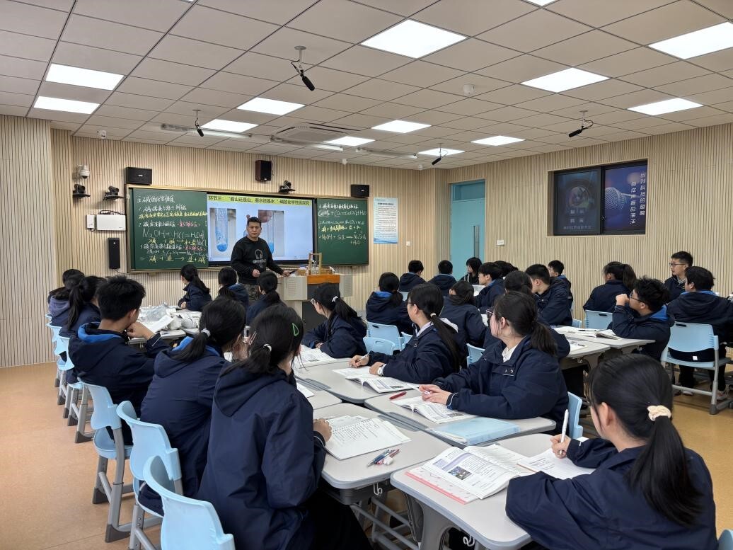 3月26日上午,中考化学复习研讨专场在我校顺利开展,聚焦化学学科复习提效。我校教师聂俊展示了《常见的酸和碱——碱的化学性质》课例,课堂以“氢氧化钠很忙”的趣味情境导入,结合中考实验操作考试回顾,引导学生自主探究碱的化学性质,通过“看山是山—看山不是山—看山还是山”的逻辑递进,清晰揭示无明显现象反应的实验证明方法与可溶性碱的通性,最后结合跨学科实践活动,设计“调节土壤酸碱性改变绣球花颜色”的探究任务,课堂逻辑缜密、知识体系完整,贴合学生认知规律,获得专家与同仁的一致好评。活动第二阶段,蜀山教研室化学教研员吴东梅主任开展中考复习专项指导,为我校化学复习指明方向,也为年轻教师专业成长提供了有力支撑。